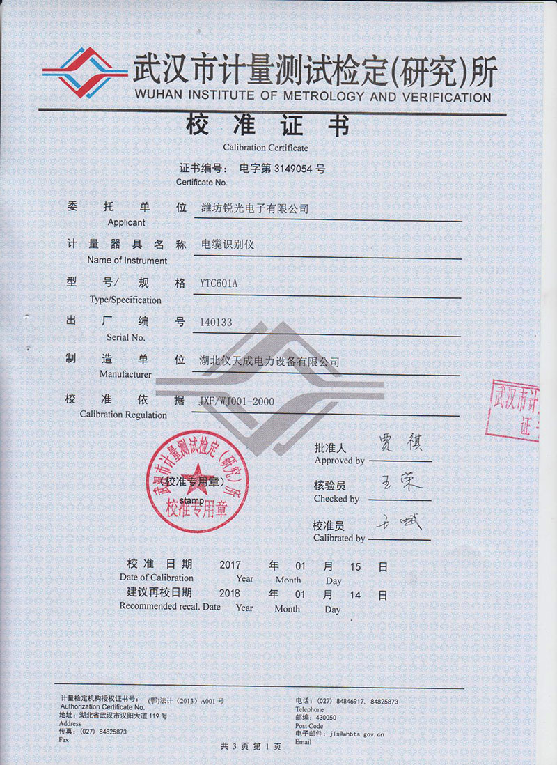 | 信號標定 | 可標定電纜數量:1~10條(帶電識別時) |