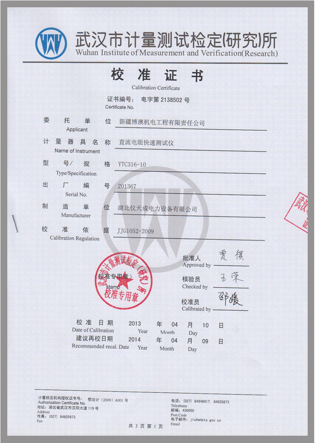 轉(zhuǎn)載:"YTC316-10直流電阻測(cè)試儀鑒定證書" 請(qǐng)注明來源于儀天成電力。 更多技術(shù)問題請(qǐng)致電儀天成電力客戶服務(wù):027-87876585,技術(shù)部專線:027-87876585,在線客服: